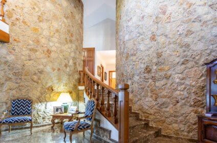 La planta superior, a la que se accede por una bonita escalera de piedra, cuenta con 4 dormitorios dobles y dos cuartos de baño, uno de ellos en suite.