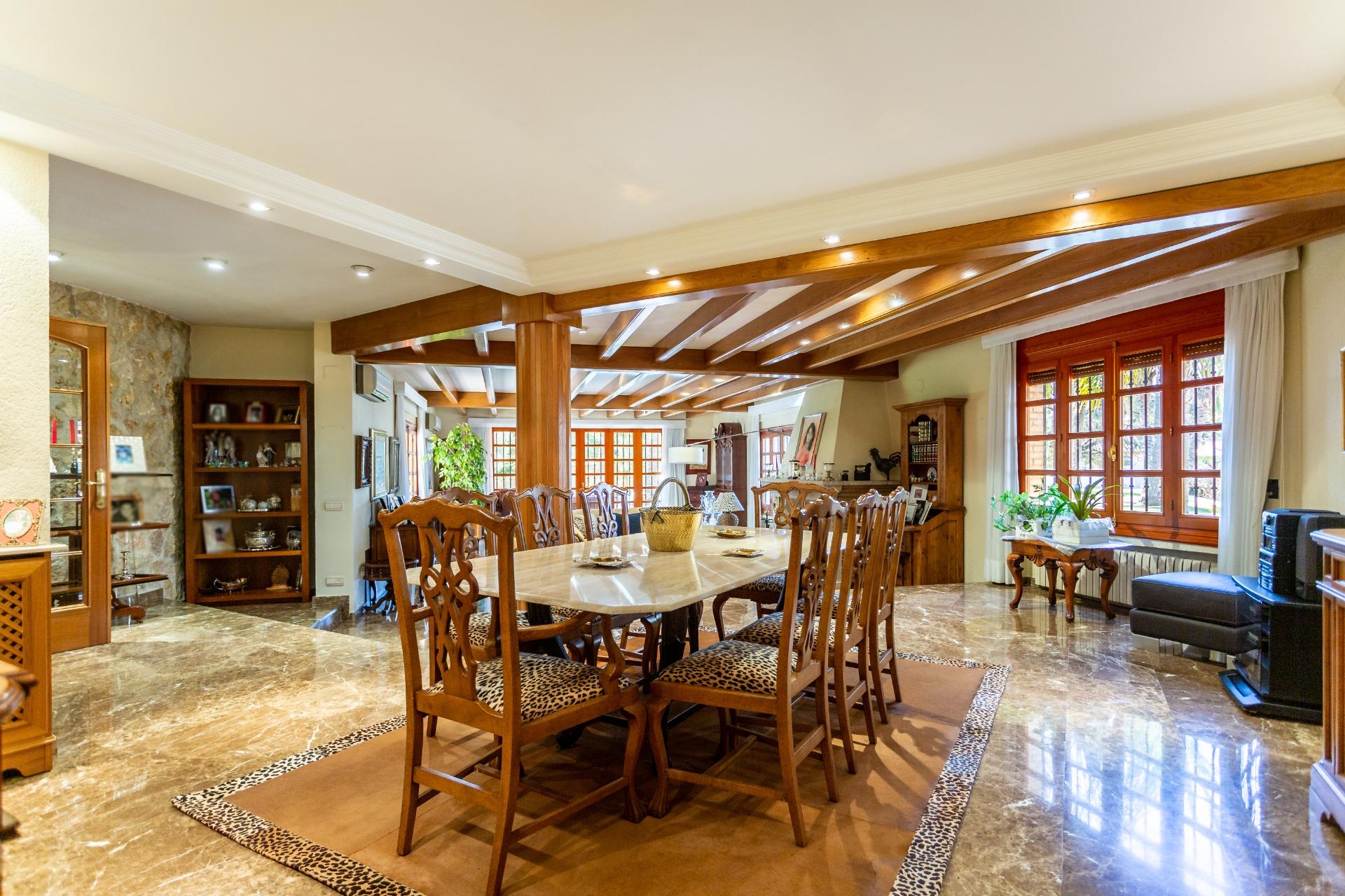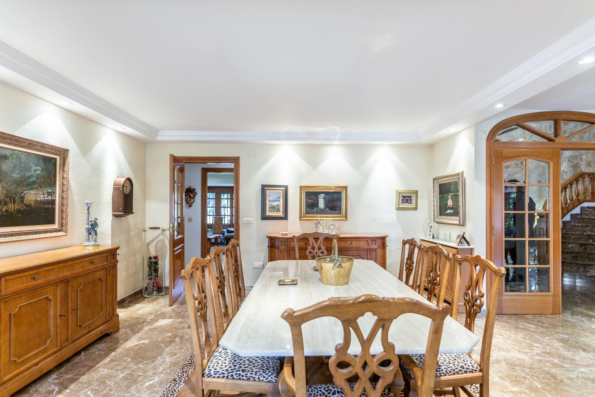 La planta baja cuenta con un amplísimo salón-comedor con grandes ventanales desde los que se disfruta de las vistas del enorme jardín , por los que entra mucha luz y desde el cual se accede a la bonita terraza que recae sobre el jardin.