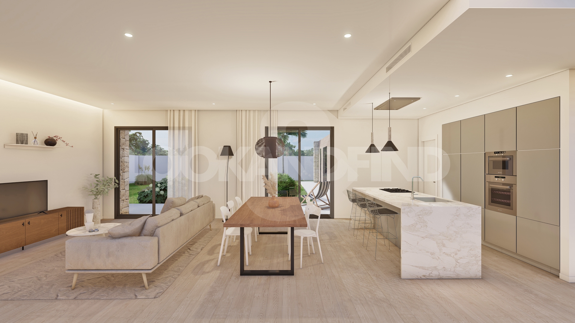Encontramos un precioso hall a la entrada, amplio y luminoso salón- comedor gracias a sus amplios ventanales de PVC con doble acristalamiento y 5 cámaras intermedias, cocina diáfana con isla equipada con muebles altos y bajos lacados en blanco, horno encastrado y microondas, placa de inducción y campana extractora, habitación en planta baja con baño completo.